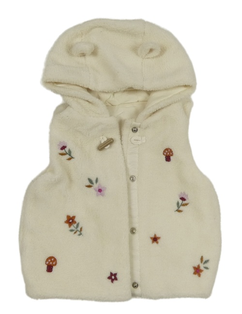 Smetanová huňatá podšitá vesta s kytičkami a kapucí Nutmeg