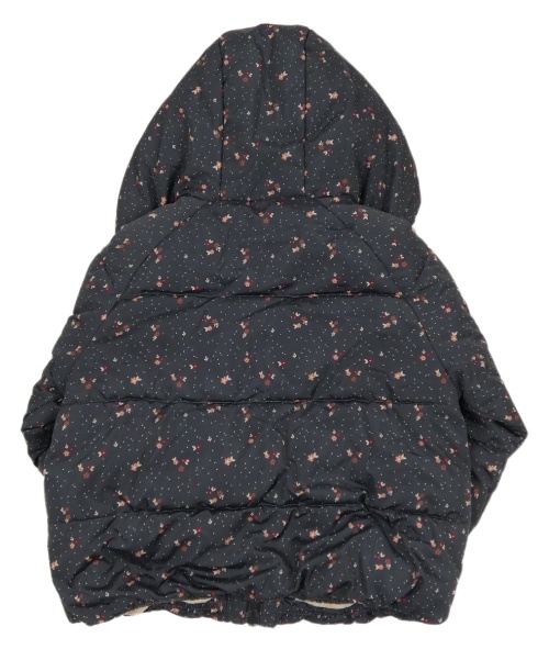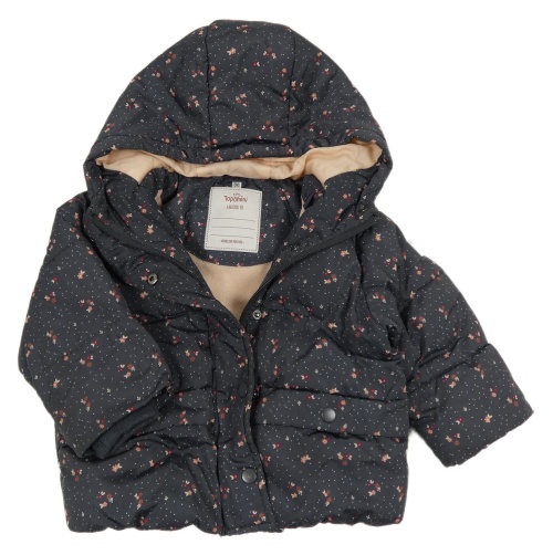 Antracitová puntíkatá šusťáková zimní bunda s květy a kapucí Topomini