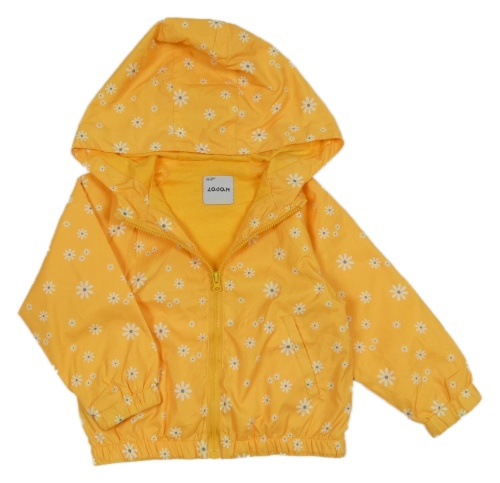 Žlutá šusťáková jarní bunda s kytičkami a kapucí Losan