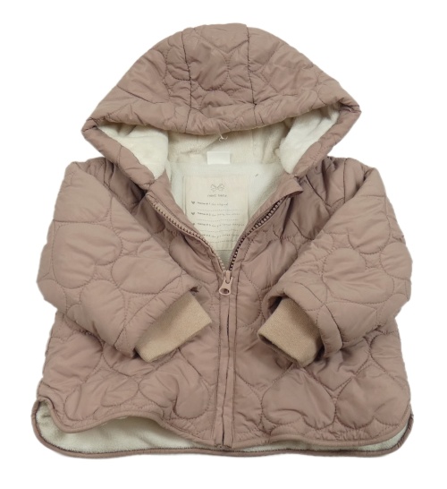 Světlehnědá šusťáková zateplená bunda s prošívanými srdíčky a kapucí Next