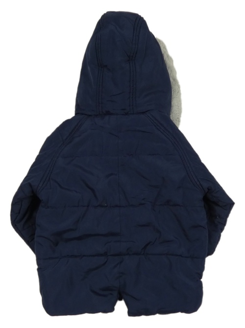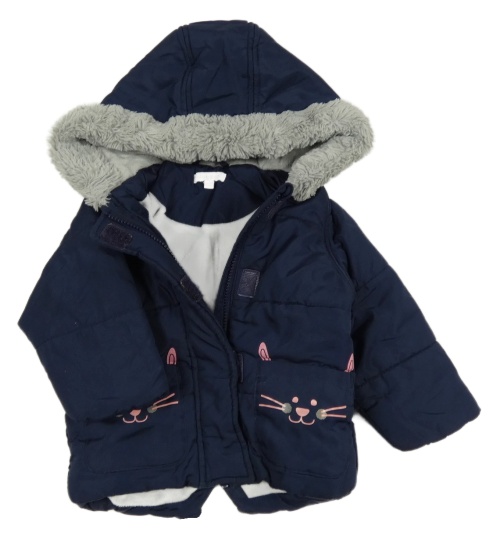 Tmavomodrá šusťáková zimní parka s kočičkami a kapucí s kožešinou Bluezoo