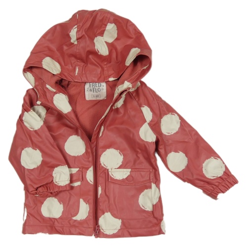Jahodovo-bílá puntíkatá nepromokavá jarní bunda s kapucí F&F