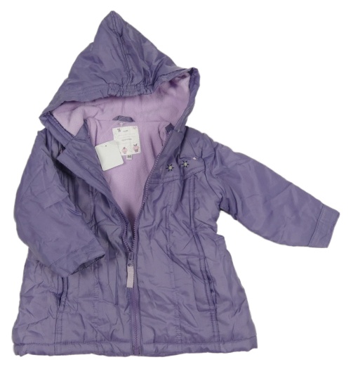 Nové - Fialová šusťáková zimní bunda s květy a kapucí