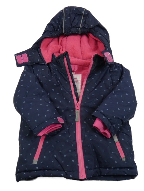 Tmavomodrá šusťáková zimní lyžařská bunda se srdíčky a kapucí Topomini