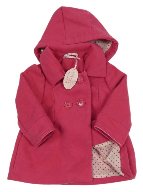 Nové - Tmavorůžový flaušový podšitý kabát s kapucí
