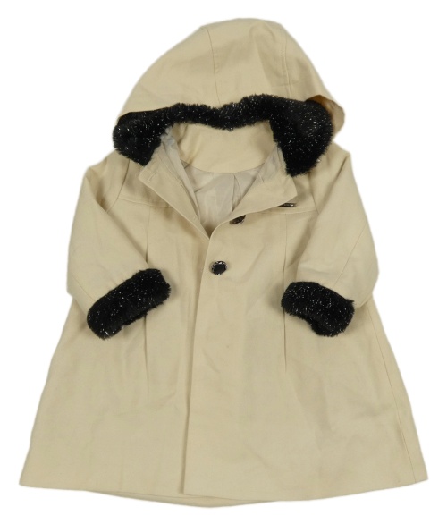 Béžovo-černý jarní kabát s kožešinou a kapucí