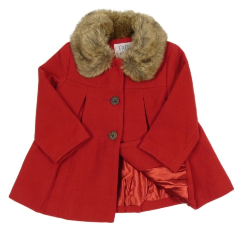 Červený flaušový podšitý kabátek s límcem s kožešinou F&F