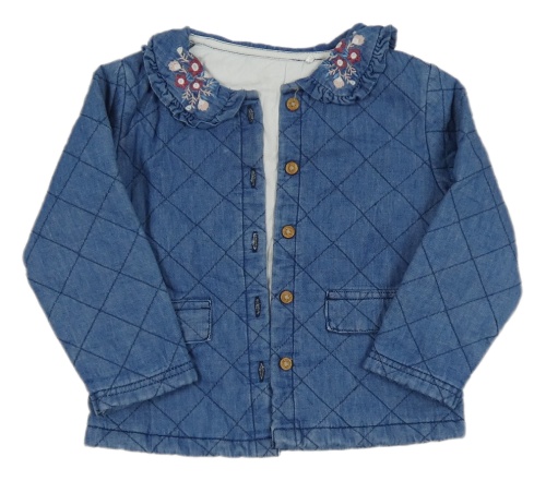 Modrá prošívaná zateplená košilová bunda riflového vzhledu s límečkem s květy Tu