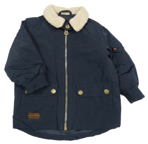 • Tmavomodrá šusťáková zateplená parka s nášivkou a huňatým límečkem Next