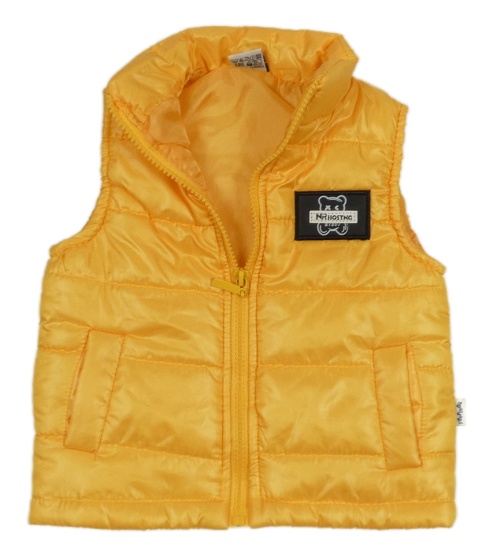 Pomerančová prošívaná šusťáková zateplená vesta s medvídkem