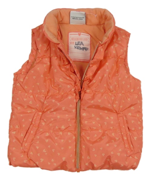 Lososová prošívaná šusťáková zateplená vesta se srdíčky a volánky Topomini