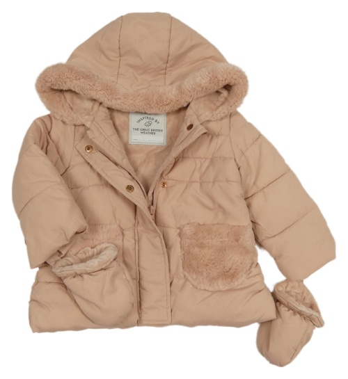 Starorůžová šusťáková prošívaná zimní bunda s kapucí + rukavice George