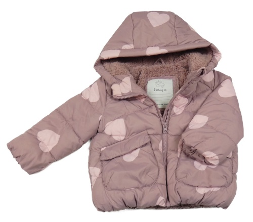 Růžová šusťáková prošívaná zimní bunda se srdíčky a kapucí Tu