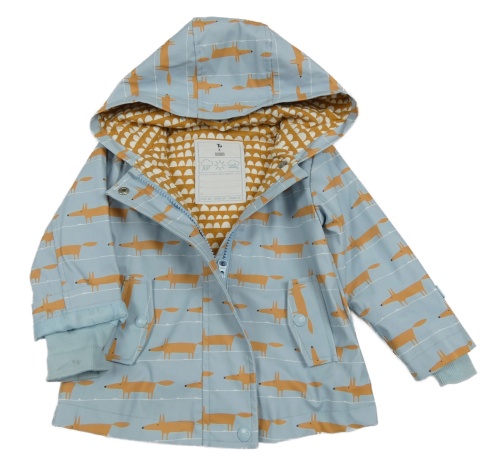 Světlemodrá nepromokavá jarní bunda s liškami a kapucí Tu