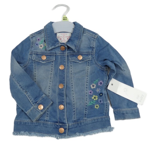 Nové - Modrá tepláková riflová bunda s výšivkami květů F&F