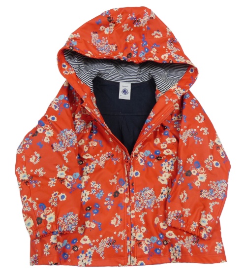 Červená květovaná nepromokavá jarní bunda s kapucí