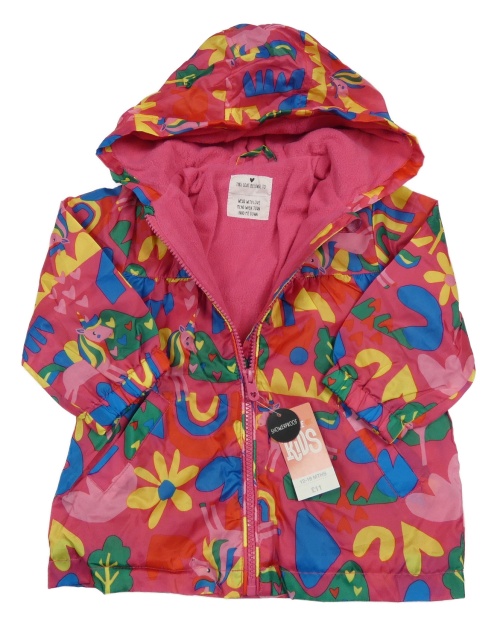 Nové - Růžová šusťáková jarní parka s jednorožci a kapucí Matalan