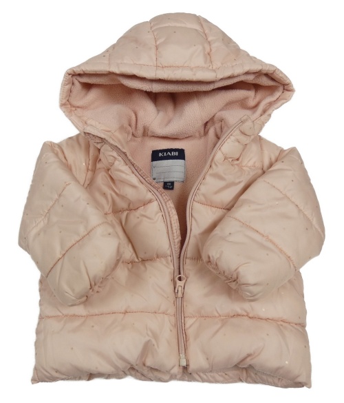 Světlerůžová puntíkatá prošívaná šusťáková zimní bunda s kapucí KIABI