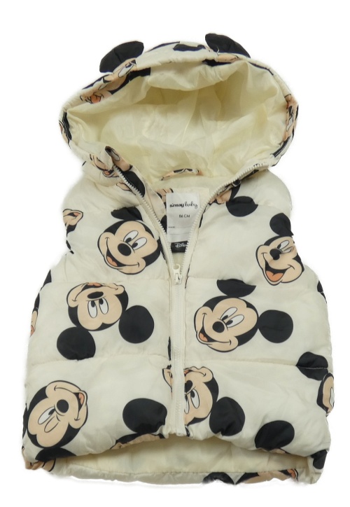 Smetanová prošívaná šusťáková zateplená vesta s Mickey a kapucí Sinsay
