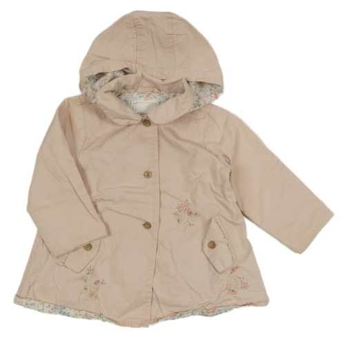 Světlerůžová plátěná jarní bunda s výšivkami květů a kapucí Next