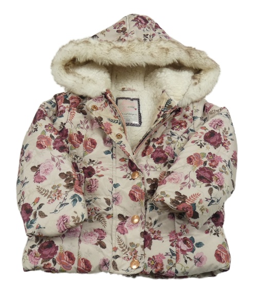 Světlebéžová šusťáková zimní parka s růžemi a kapucí s kožešinou F&F