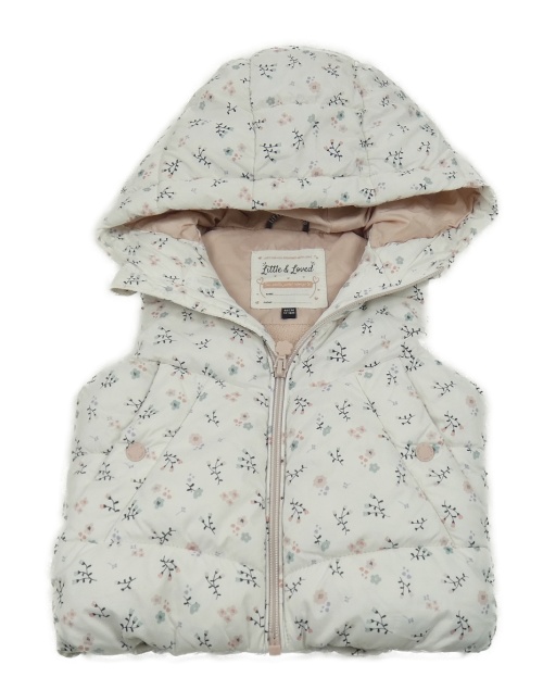 Bílá prošívaná šusťáková zateplená vesta s kytičkami a kapucí C&A