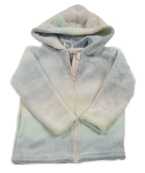 Duhová třpytivá plyšová bunda s kapucí s oušky Ergee