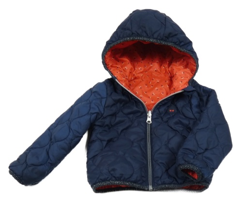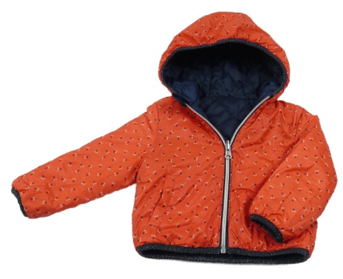 Červená šusťáková zateplená oboustranná bunda s třešněmi a kapucí C&A