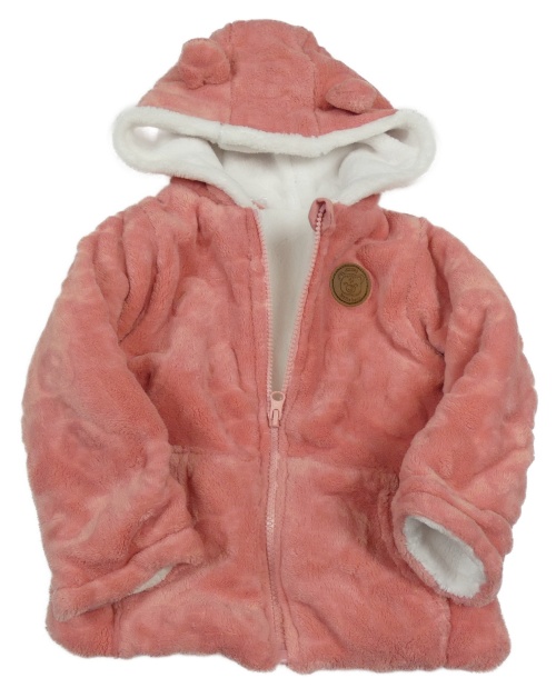 Růžová chlupatá zateplená bunda s medvídkem a kapucí