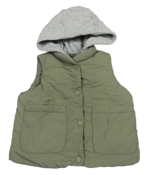 Khaki prošívaná šusťáková zateplená vesta s kapucí ZARA