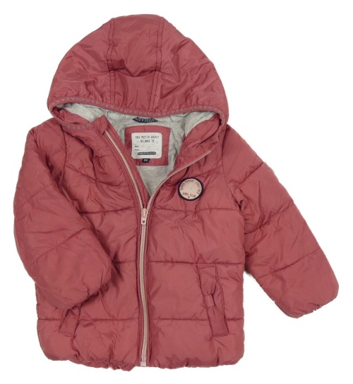 Starorůžová prošívaná šusťáková zimní bunda s nášivkou a kapucí C&A