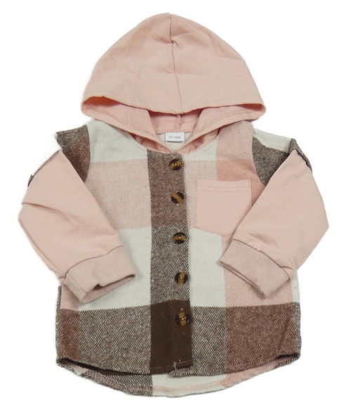 Růžovo-hnědá úpletová košilová bunda s trikovými rukávy a kapucí