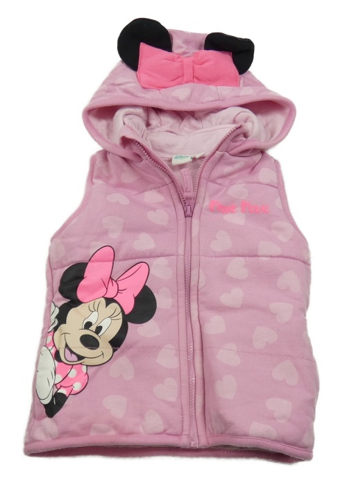 Růžová tepláková zateplená vesta se srdíčky s Minnie a kapucí Disney