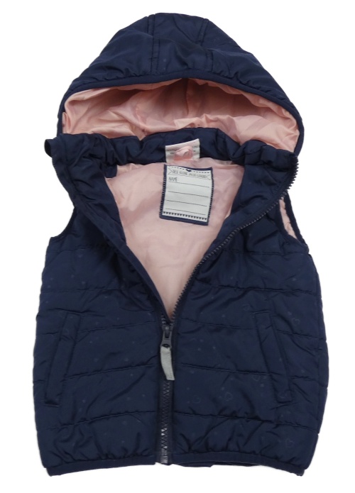 Tmavomodrá šusťáková zateplená vesta s kapucí Topolino