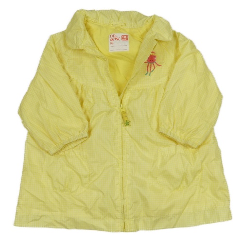 Žluto-bílý kostkovaný šusťákový jarní kabát s chobotnicí a límečkem DP...am