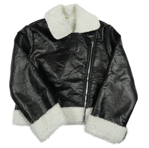 Černá koženková zateplená crop bunda s beránkem Shein