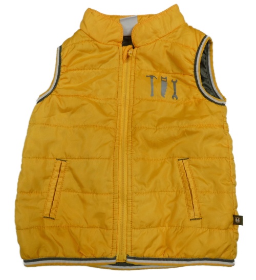 Tmavožlutá prošívaná šusťáková zateplená vesta s nářadím BUBBLE GUM