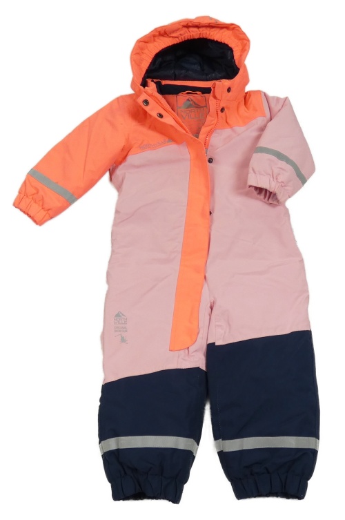 Neonově korálovo-růžovo-tmavomodrá šusťáková zimní kombinéza s kapucí C&A
