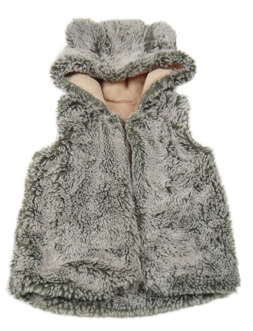 Šedá kožešinová zateplená vesta s kapucí s oušky George