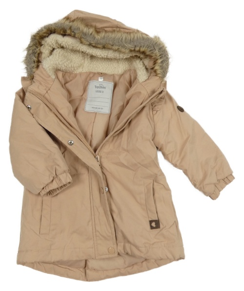 Pudrová šusťáková zimní parka s kapucí s kožešinou Topomini