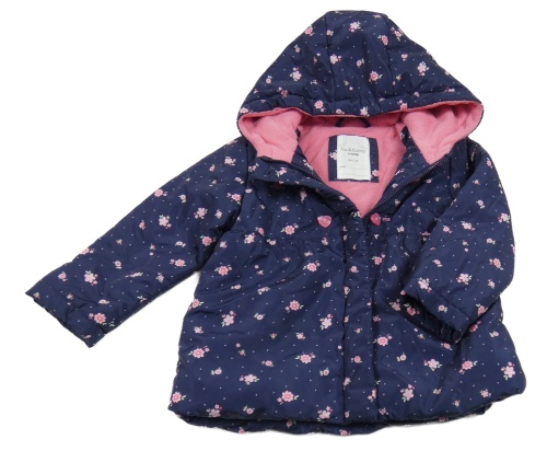 Tmavomodrá květinová šusťáková zimní bunda s kapucí Sinsay