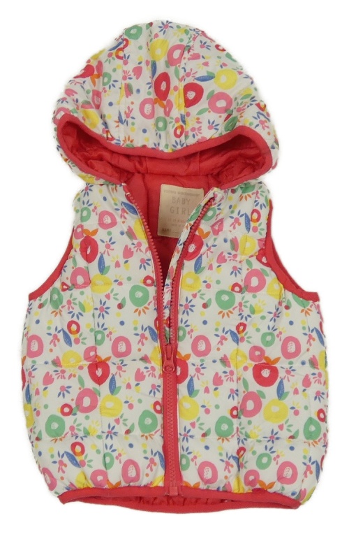 Bílo-barevná šusťáková zateplená vesta s kapucí