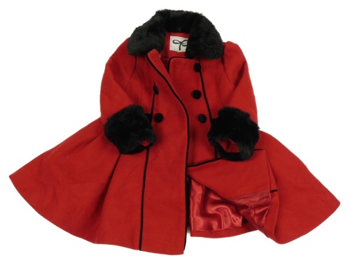 Červený flaušový podšitý kabát s kožešinou St. Bernard