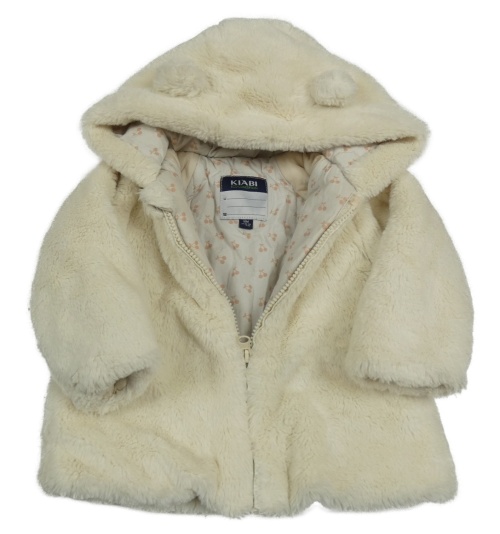 Smetanová kožešinová zateplená bunda s kapucí s oušky KIABI