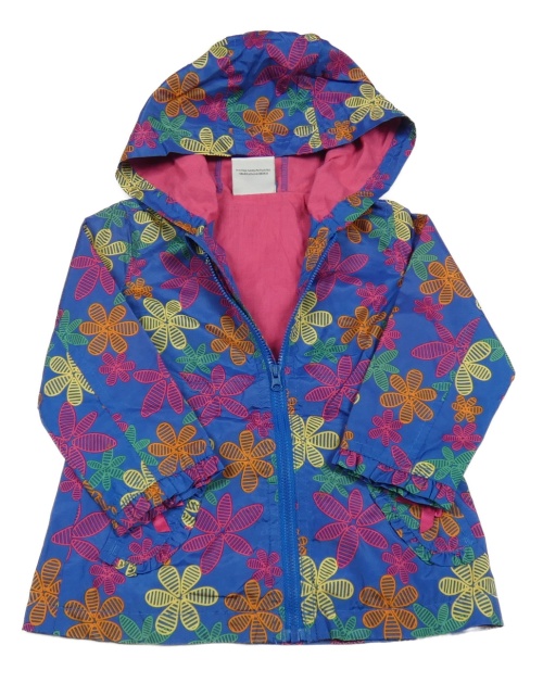 Tmavomodro-barevná květovaná šusťáková jarní bunda s kapucí Topomini