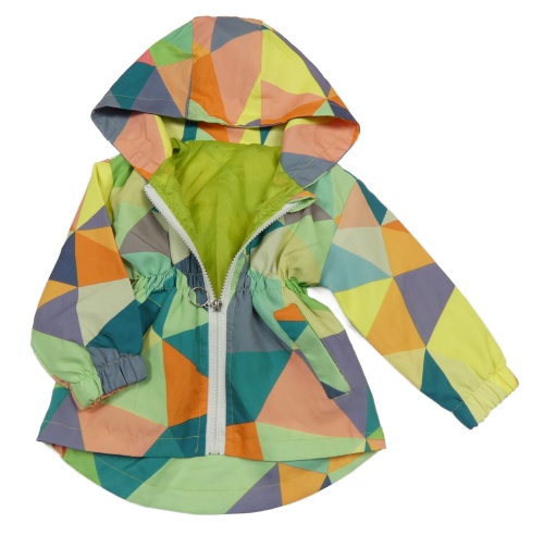 Barevná vzorovaná šusťáková jarní parka s kapucí