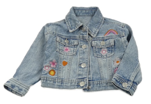 Světlemodrá riflová bunda s kytičkami a duhou Nutmeg