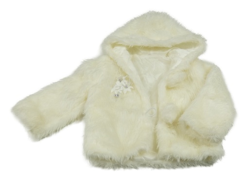 Krémová kožešinová podšitá bunda s květinami a kapucí