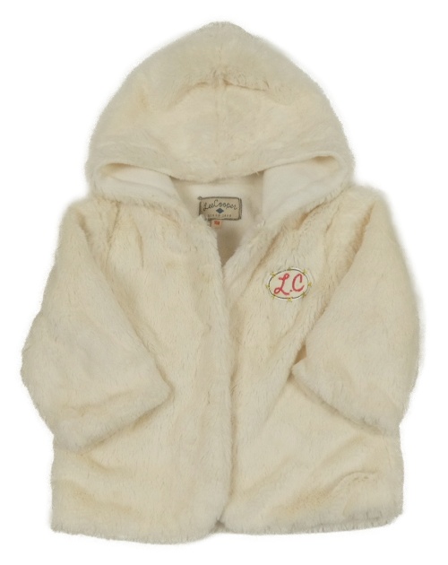 Smetanový kožešinový podšitý kabátek s nášivkou a kapucí