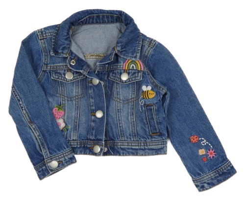 Tmavomodrá riflová crop bunda s obrázky Nutmeg